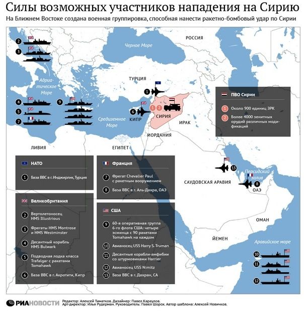 Это не религиозный конфликт, ты следишь за ним? А ООН чего это мертвая, давай посмотрим что скажут инспекторы дело не только в Сирии. Сирия союзник Ирана. а только что Цитата Комитет по международным отношениям верхней палаты конгресса США проголосовал в поддержку резолюции, санкционирующей проведения военной операции в Сирии, сообщает агентство Рейтер. Десять сенаторов проголосовали в поддержку проекта, семеро членов комитета высказались против. Сенат рассмотрит проект резолюции в полном составе не ранее 9 сентября, когда конгресс США возобновит работу после летнего перерыва. схемка интересная, но устарела. британия не будет принимать участие, однако расстановка сил впечатляет.